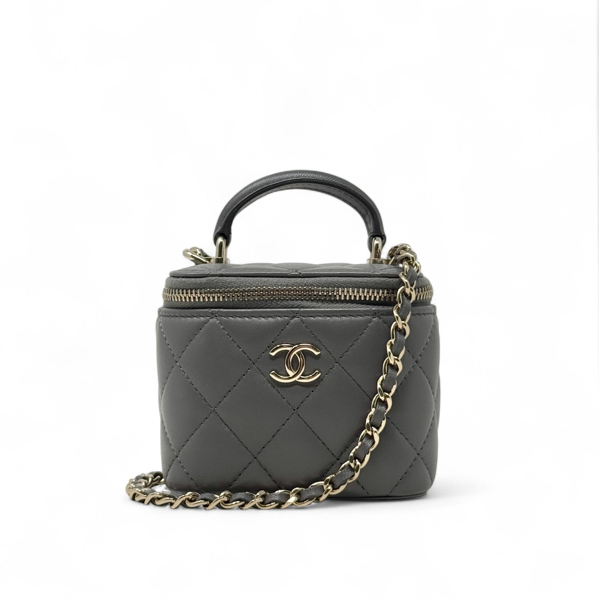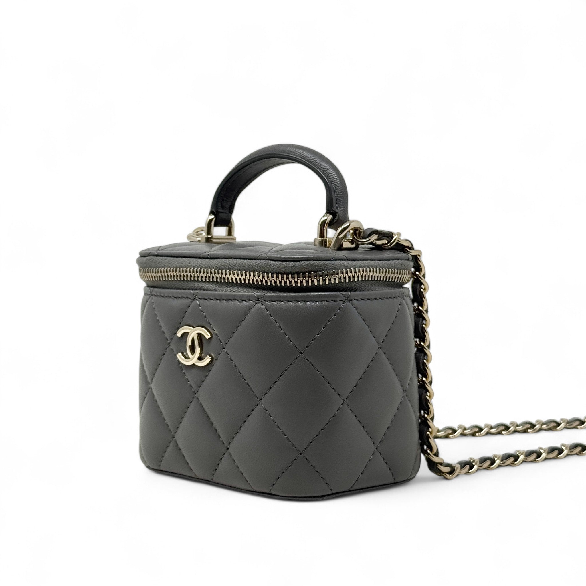 Chanel Grey Mini Vanity Case With Chain